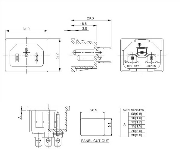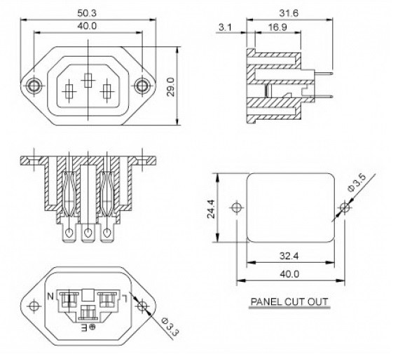 Złącze zasilające AC C13 i C14